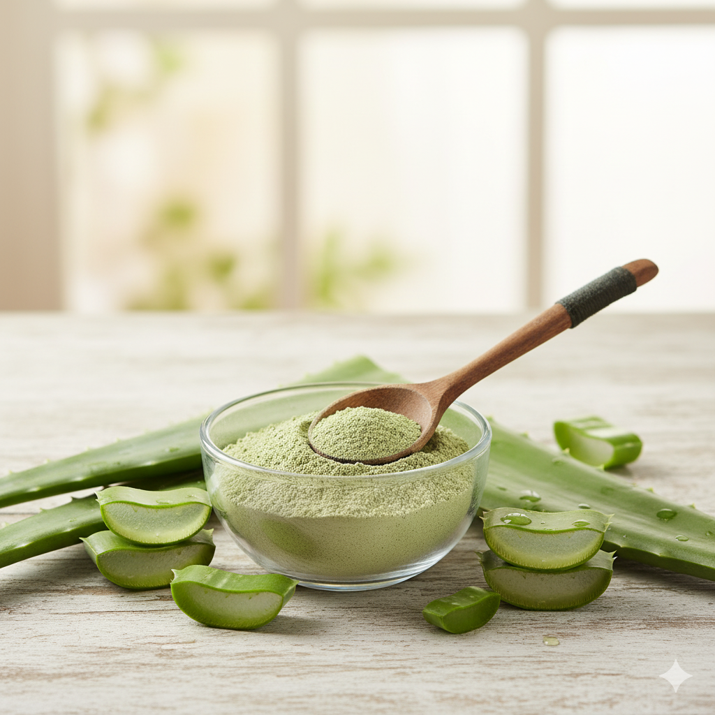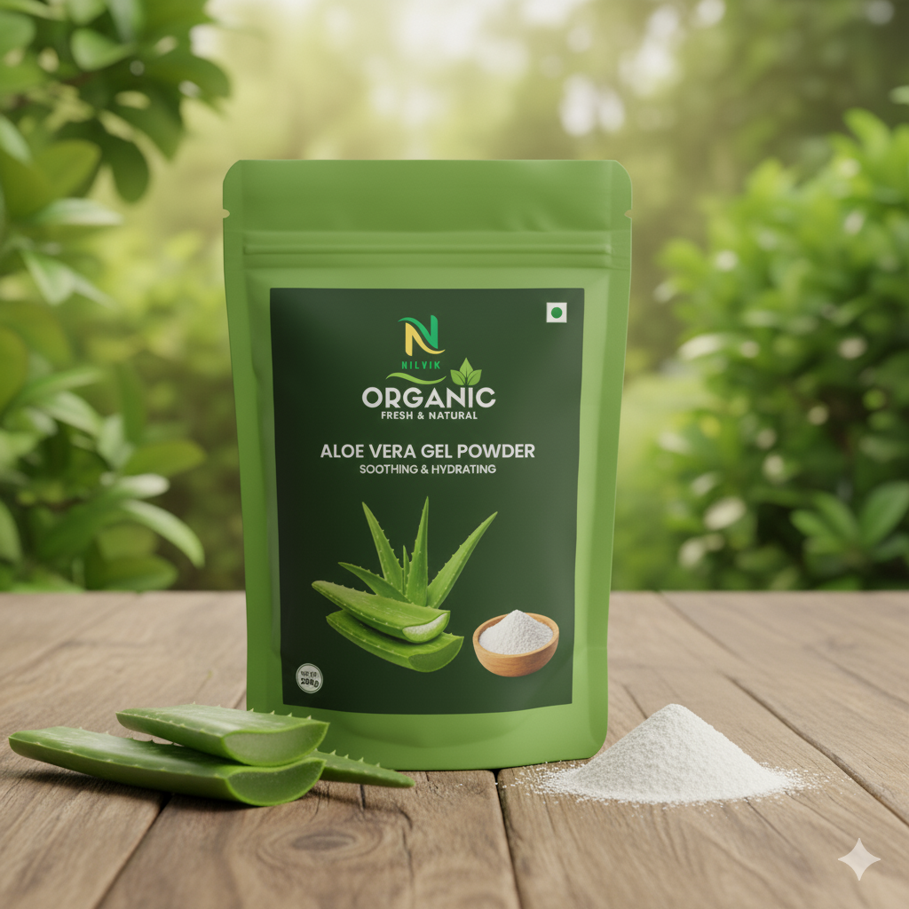 NilvikOrganic Aloe Vera Leaves Powder is a 100% pure and natural product made from organically grown Aloe Vera leaves. Carefully processed and finely powdered, it retains all the essential nutrients, enzymes, and antioxidants of fresh Aloe Vera. Known for its soothing, hydrating, and healing properties, it’s a versatile ingredient widely used in cosmetics, skincare, hair care, and health formulations.