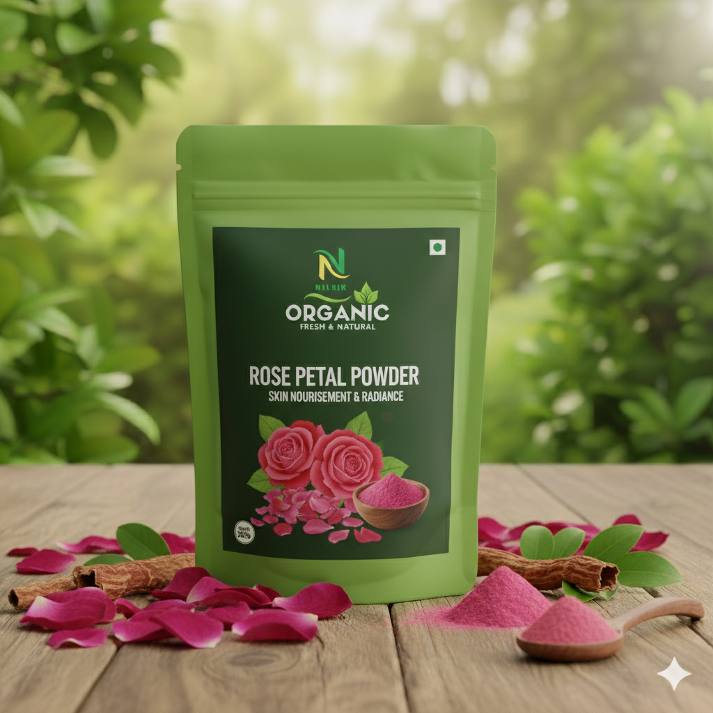 NilvikOrganic Rose Petal Powder is crafted from freshly handpicked, organically grown rose petals that are gently dried to preserve their natural fragrance and nutrients. Rich in antioxidants and vitamins, it rejuvenates the skin, tones complexion, and offers a natural cooling effect. Perfect for face masks, hair packs, and herbal cosmetic blends.