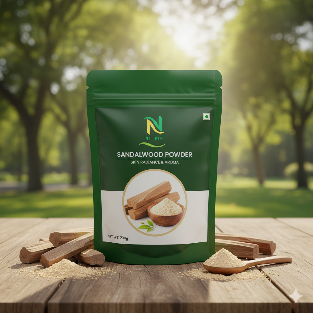 NilvikOrganic Sandalwood Powder is made from the heartwood of organically grown Santalum album, renowned for its soothing fragrance and natural skincare properties. Used in Ayurveda for centuries, sandalwood helps cool the skin, reduce blemishes, and enhance complexion. It’s ideal for face packs, aromatherapy, and premium herbal cosmetic formulations.