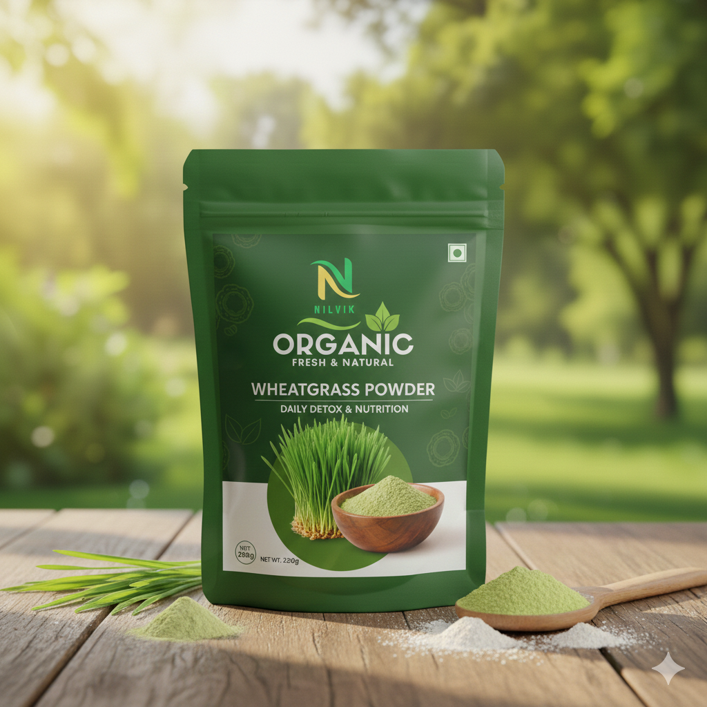 NilvikOrganic Wheatgrass Powder is made from tender, nutrient-rich wheatgrass leaves harvested at their peak. Packed with chlorophyll, antioxidants, vitamins, and minerals, it is a natural superfood that detoxifies the body, boosts energy, and supports overall wellness. Ideal for smoothies, juices, and daily nutrition, our wheatgrass powder is gently processed to preserve its vibrant color and nutritional potency.
